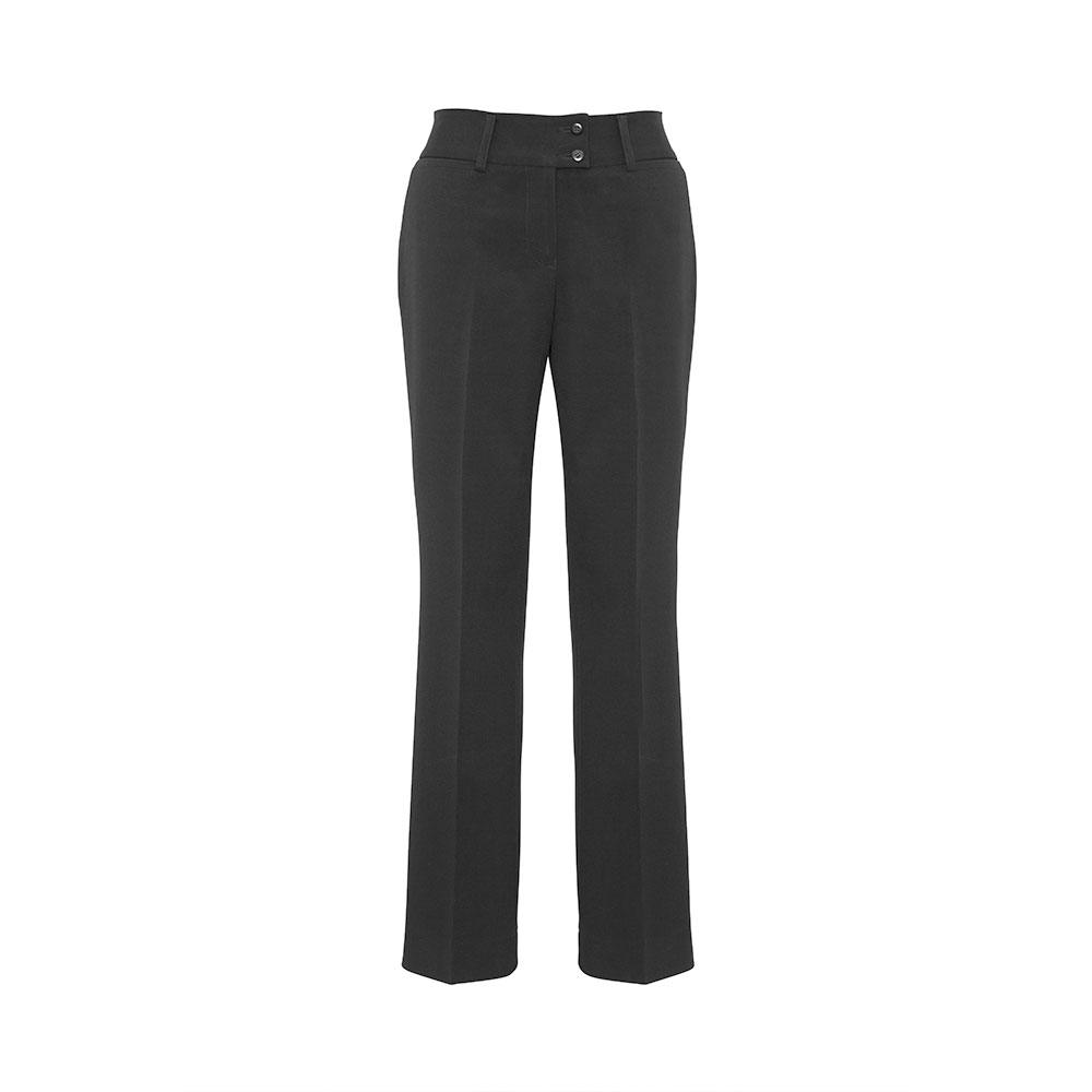 The "Eve" pant by Biz Collection is a mid-rise ladies pant that features a comfortable wide waistband and classic straight legs.