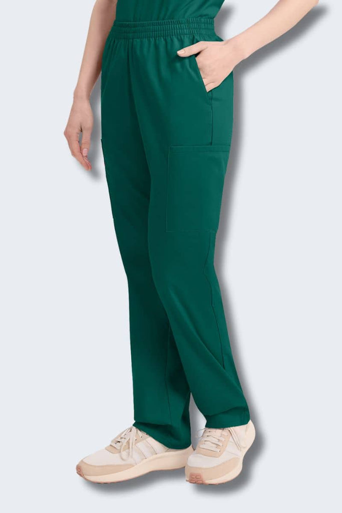 The 86106 scrub pants feel more like your favourite dress pants than scrubs. They feature a slim fit that flatters women's natural curves without being tight. Enjoy comfort and practicality with the 86106 Dickies EDS Women's Elastic Waist Cargo Scrub Pants. These pants feature a modern classic fit with a natural rise and an elastic waistband for a secure, comfortable fit. The durable fabric blend of 55% cotton and 45% polyester offers easy care and long-lasting wear. With multiple pockets, including spacious cargo pockets, you'll have plenty of room to store your essentials. Perfect for healthcare professionals who need reliable and comfortable workwear. Choose Dickies for top-quality scrubs.
