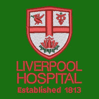 Liverpool Hospital Established 1813 (Red Text) logo. Left Chest