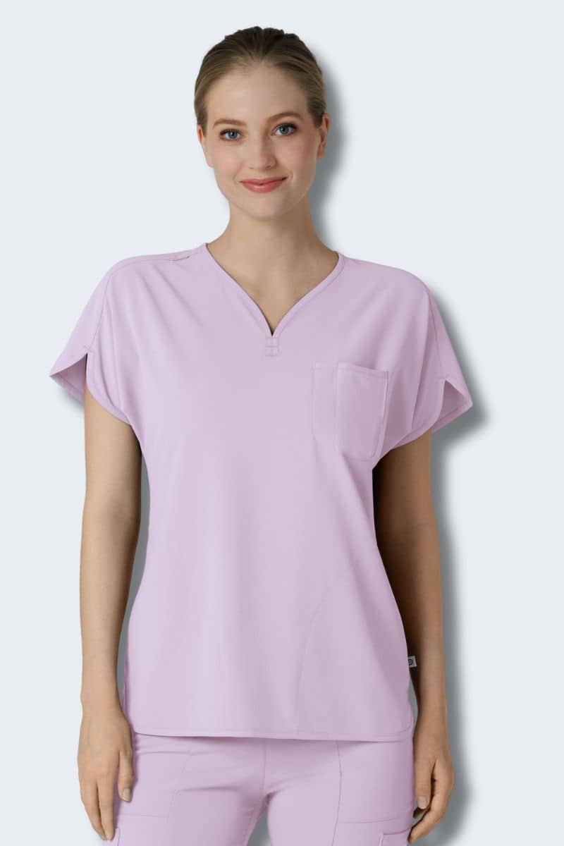 Elevate your workday style with the Wink Women's Dolman Scrub Top, designed to combine fashion and function effortlessly. This scrub top features a Y-neck design with elegant binding details and Dolman sleeves, creating a flattering silhouette that keeps you looking professional throughout your shift
