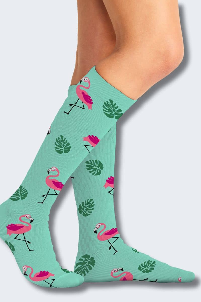 Why stand when you can strut? Step into the Flamingo Life and bring a splash of sass to your workday. These vibrant compression socks offer tropical flair with feather-light comfort, all while giving your legs the circulation boost they deserve. The 10-15 mmHg compression keeps things flowing, so you can stand tall (on one leg or both) from dawn to dusk. Made in the USA and spun with style.
