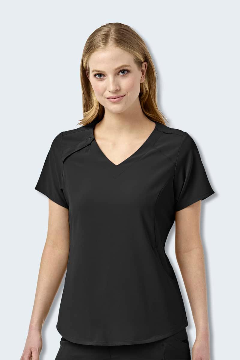 Not only is this top beautifully designed for a trendy, flattering fit, but it also features several built-in enhancements that improve its functionality on the job. These unique features include: