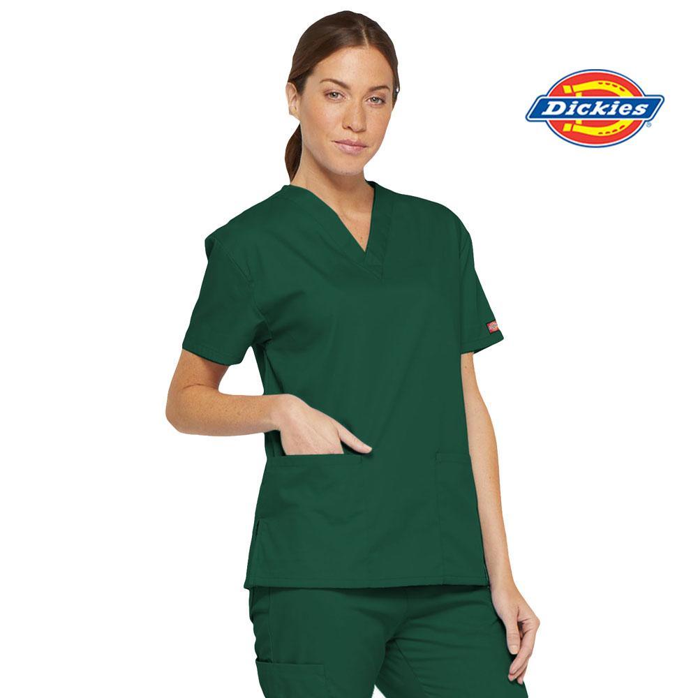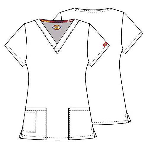 Description:Modern Classic Fit (allows for women's natural curves), V-neck scrubs top features Dickies logo twill tape at the back neck, patch pockets, a stretchy Red knit interior pocket and side vents. Centre back length: 27".