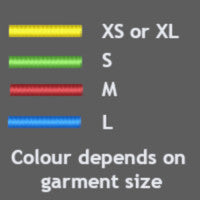 Coloured bar used to indicate the size of uniforms for Brunswick East Dental Studio - XS/XL gets Yellow (060a), S gets Green (060b), M get Red (060c), L gets Blue (060d).