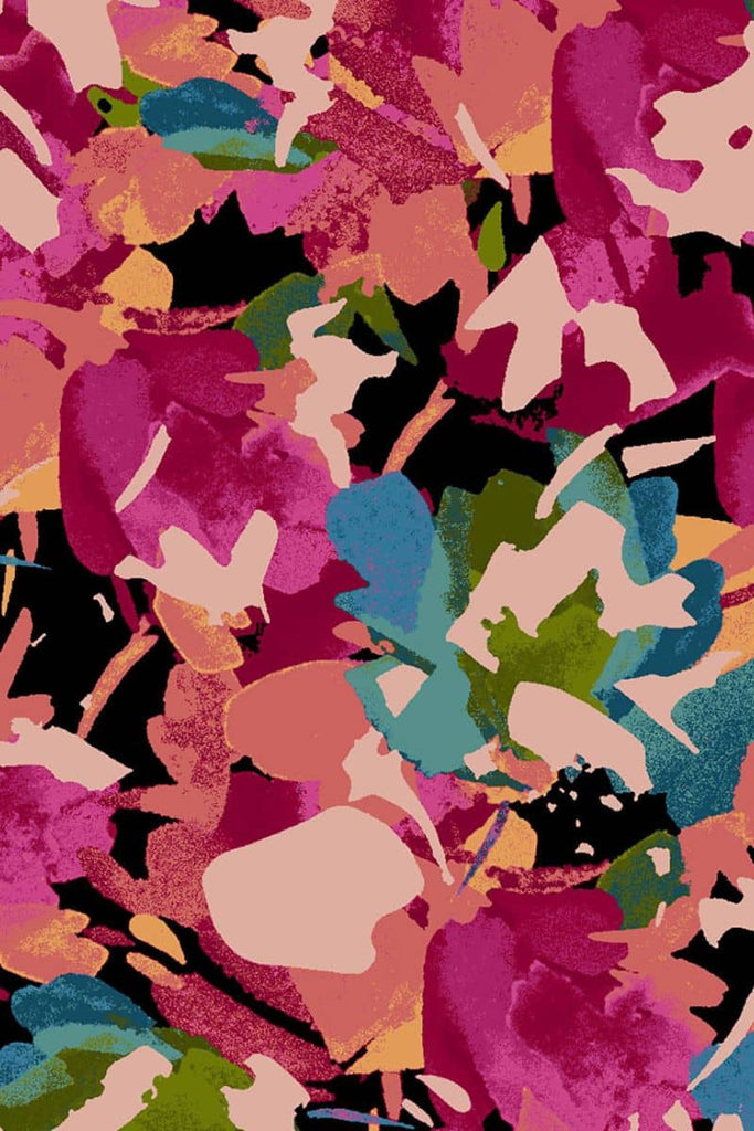 Florals, but make it abstract! This Modern Classic fit v-neck scrub top features bold pinks, deep blues, soft peaches, and pops of green against a black background. It's as practical as stylish, designed with two half-welt front pockets, a shirttail hem, and knit details for extra comfort.