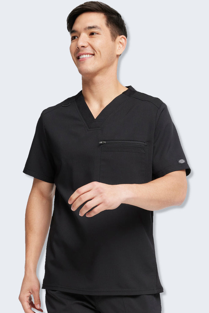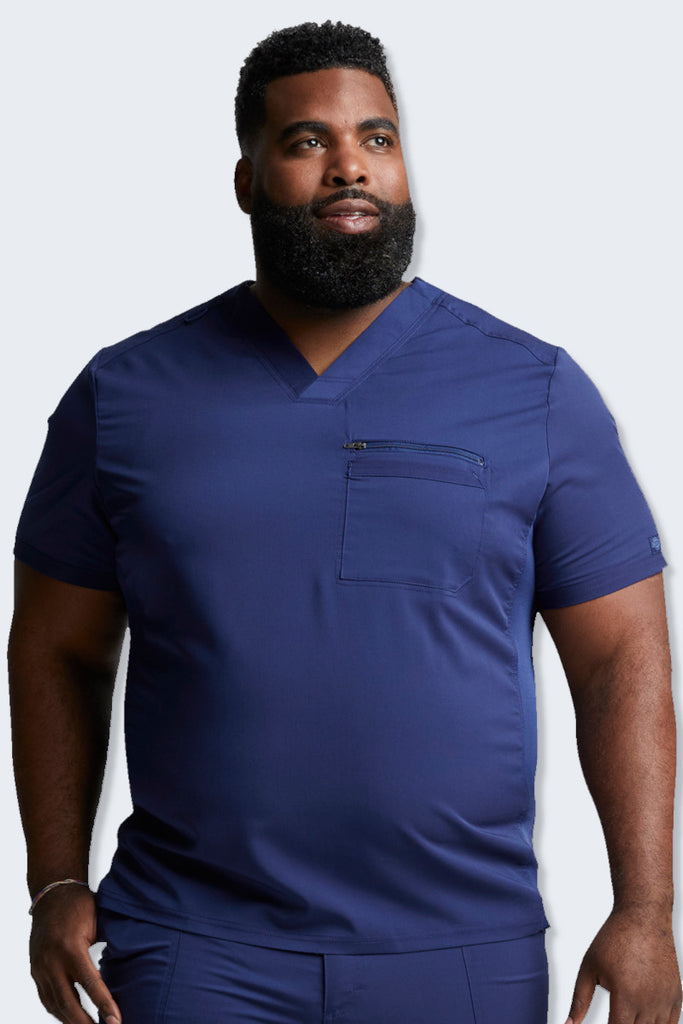 Experience functionality and comfort with the DK865 Dickies Balance Men's V-Neck Top. This men's fit top features a flattering V-neck design and is made from a blend of 77% polyester, 20% rayon, and 3% spandex for durability and flexibility. With multiple pockets, including a chest pocket, you'll have ample storage for your essentials. Ideal for healthcare professionals seeking a blend of style and practicality. Choose Dickies for high-quality, reliable workwear.